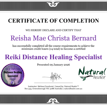 Natural Healer Reiki Distance Healing Specialist Certification Accreditations
